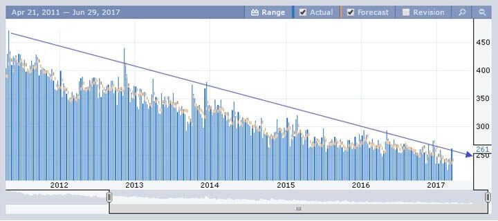 Точно так же в динамике можно анализировать и заявки на пособия по безработице, предполагая выходящие данные по ее уровню.